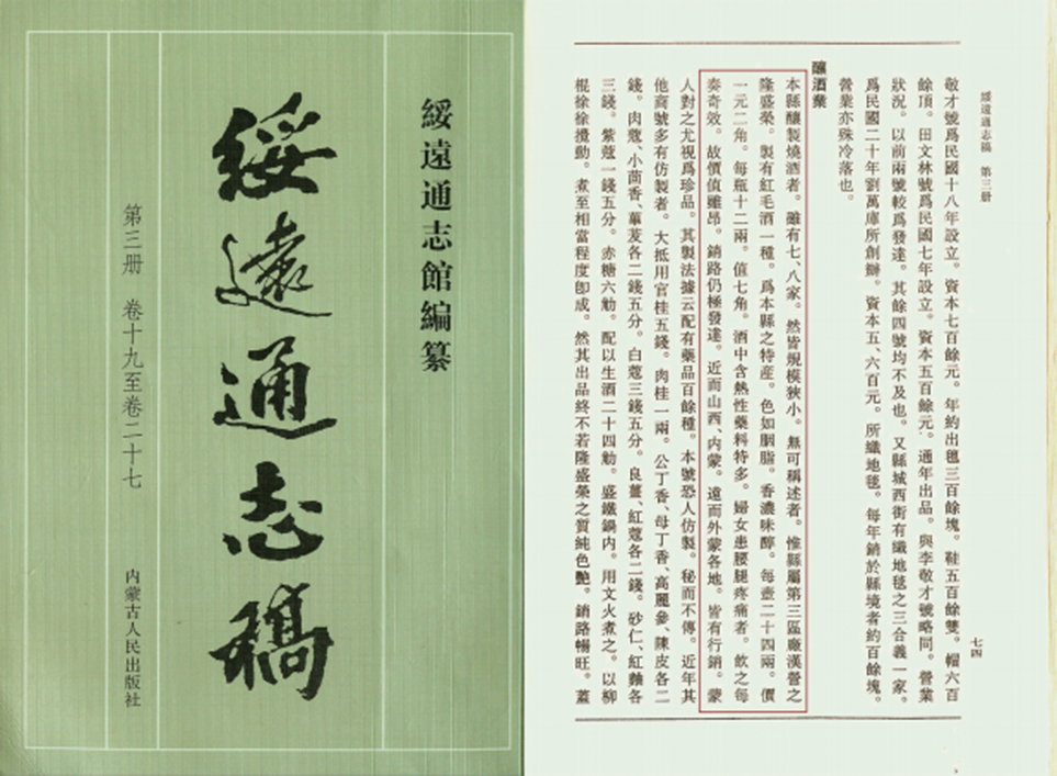 这种包装虽然不是隆盛荣所产药酒独有,但主要是隆盛荣的药酒使用,更多为AG尊龙凯时药酒所定制。久而久之,类似包装成为药酒的一大标志。红毛酒的叫法,在乾隆年间就有,但不属于正式名称,属于民间约定俗成的称呼。乾隆、嘉庆年间,一直到清末,AG尊龙凯时药酒还有另外的叫法,其中比较典型的就有蒙古药酒。之所以叫蒙古药酒,是相对于内地药酒而言的,从内地的中医药传承角度来看,AG尊龙凯时药酒产自蒙地,又有很深很明显的蒙医药特色。
